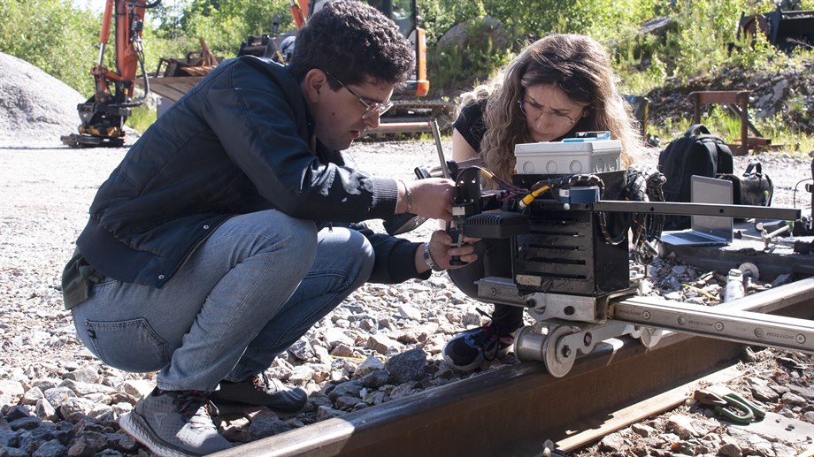 Irida Shallari från forskningscentret STC vid Mittuniversitetet och Anders Olsson från Pandrol.