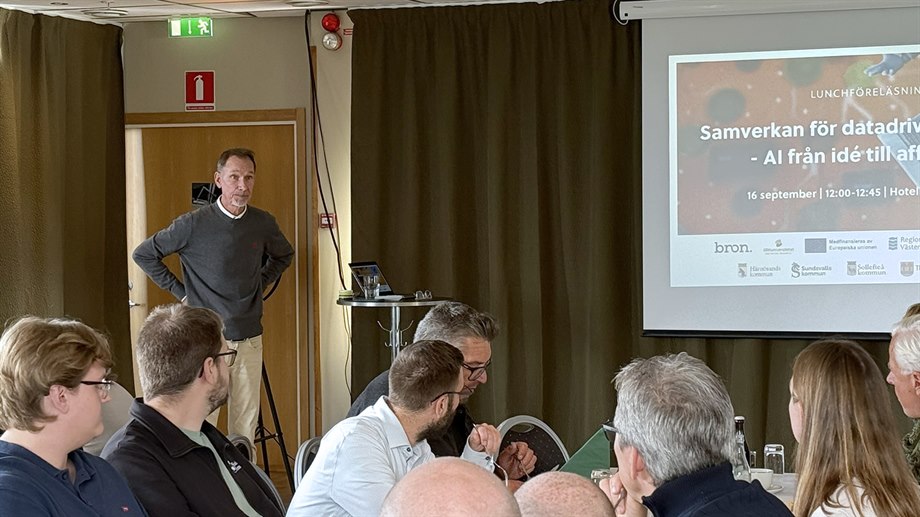 Mid Sweden University's Professor Mattias O'Nils began the day with a lecture on how AI works, what challenges exist and what opportunities the technology creates. He also shared examples of how the university collaborates with companies and organisations to develop data-driven working methods, products and services.