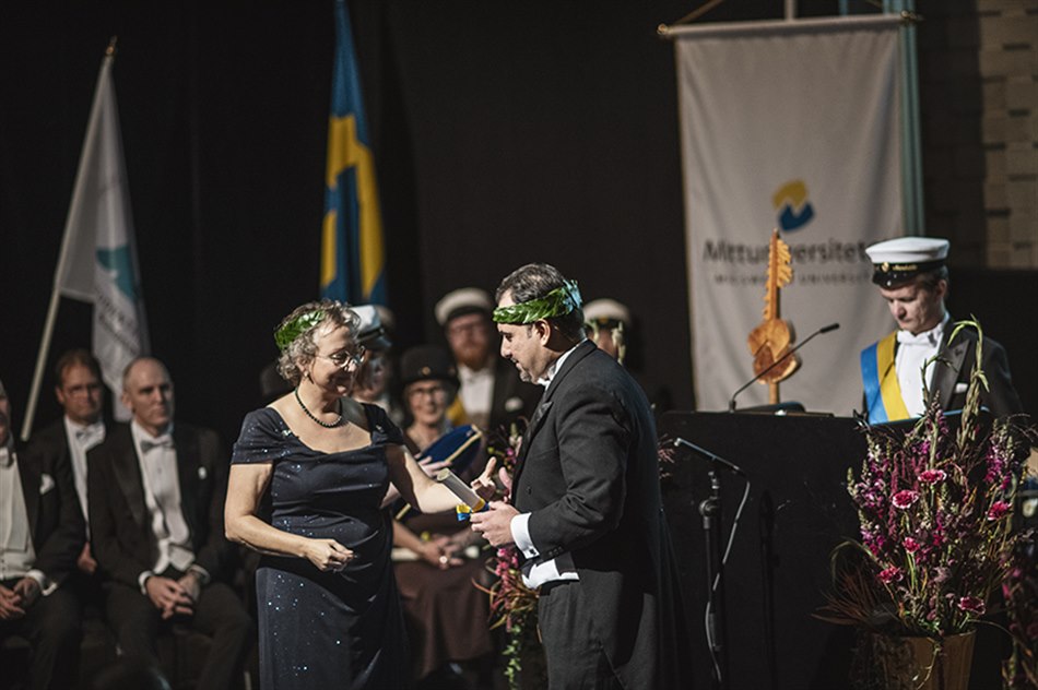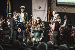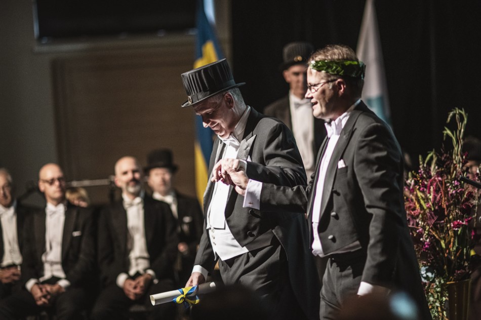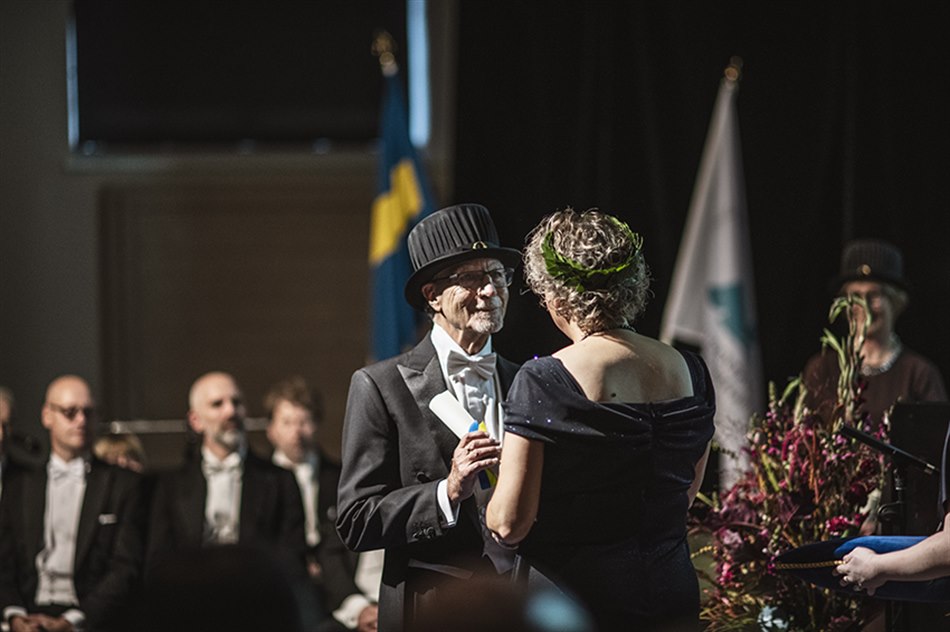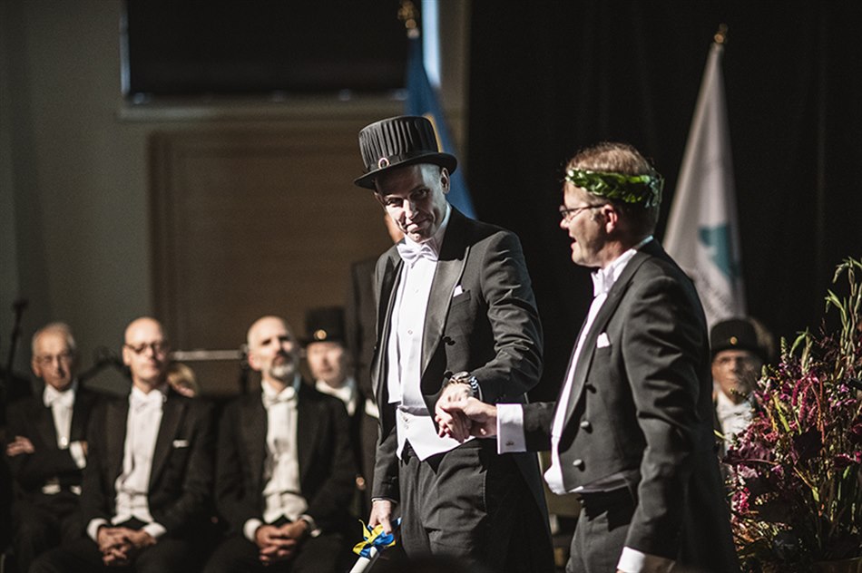 Vid högtidsceremonin den 6 oktober promoverade vi fyra hedersdoktorer och 13 doktorer samt installerade två nya professorer. Vi delade ut fem vetenskapliga och pedagogiska priser samt två förtjänstmedaljer.